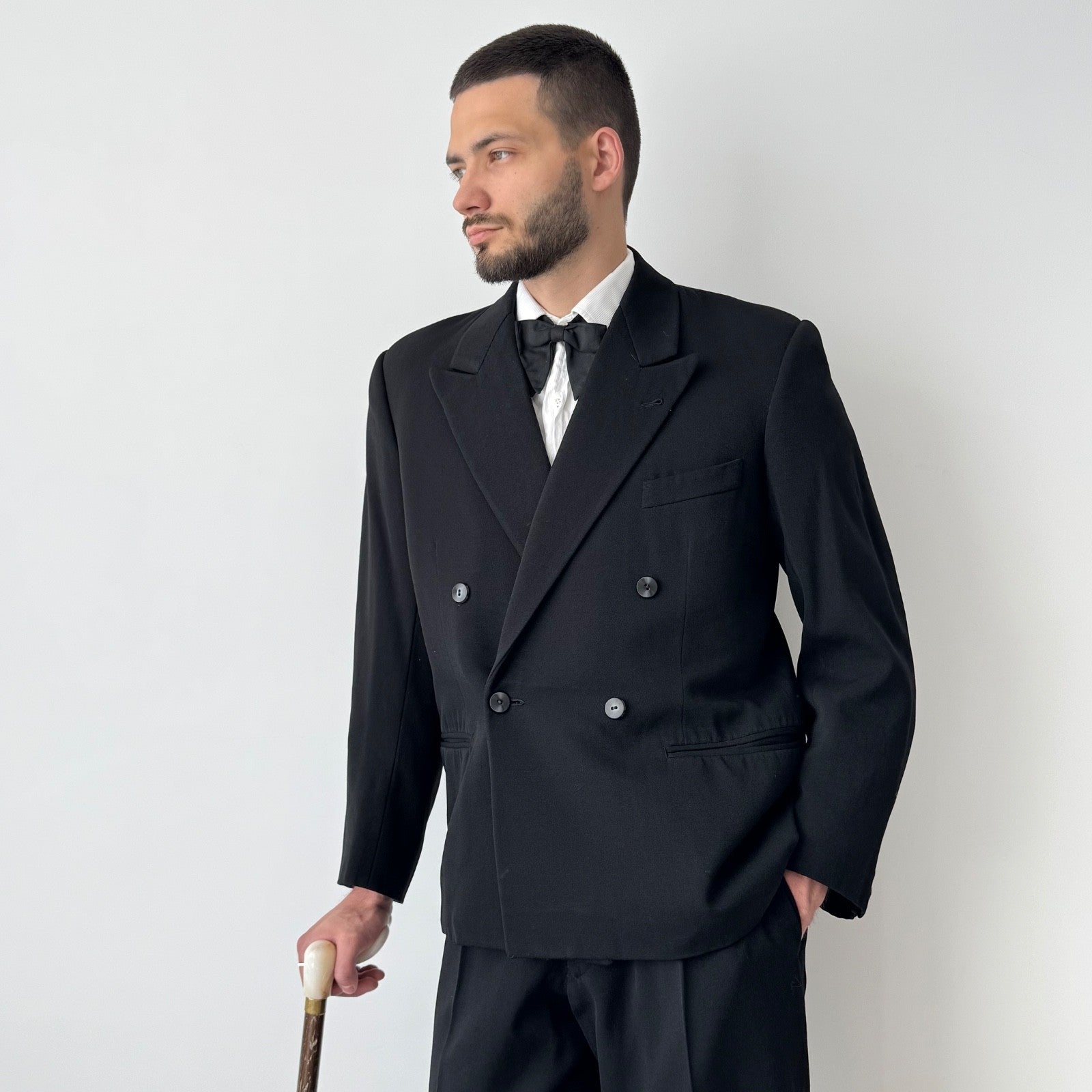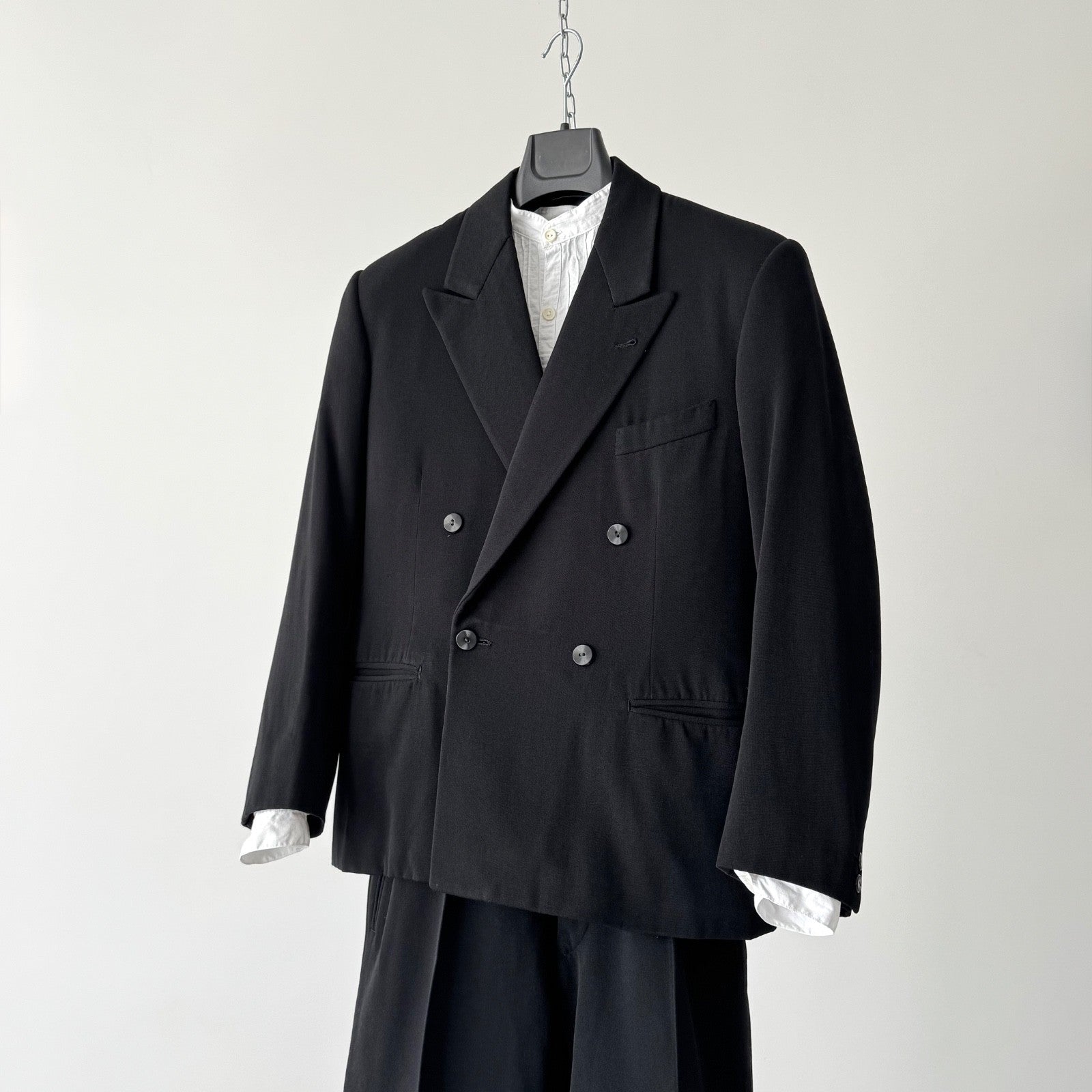 1940s European Black Double Breasted Bespoke Wool Suit
