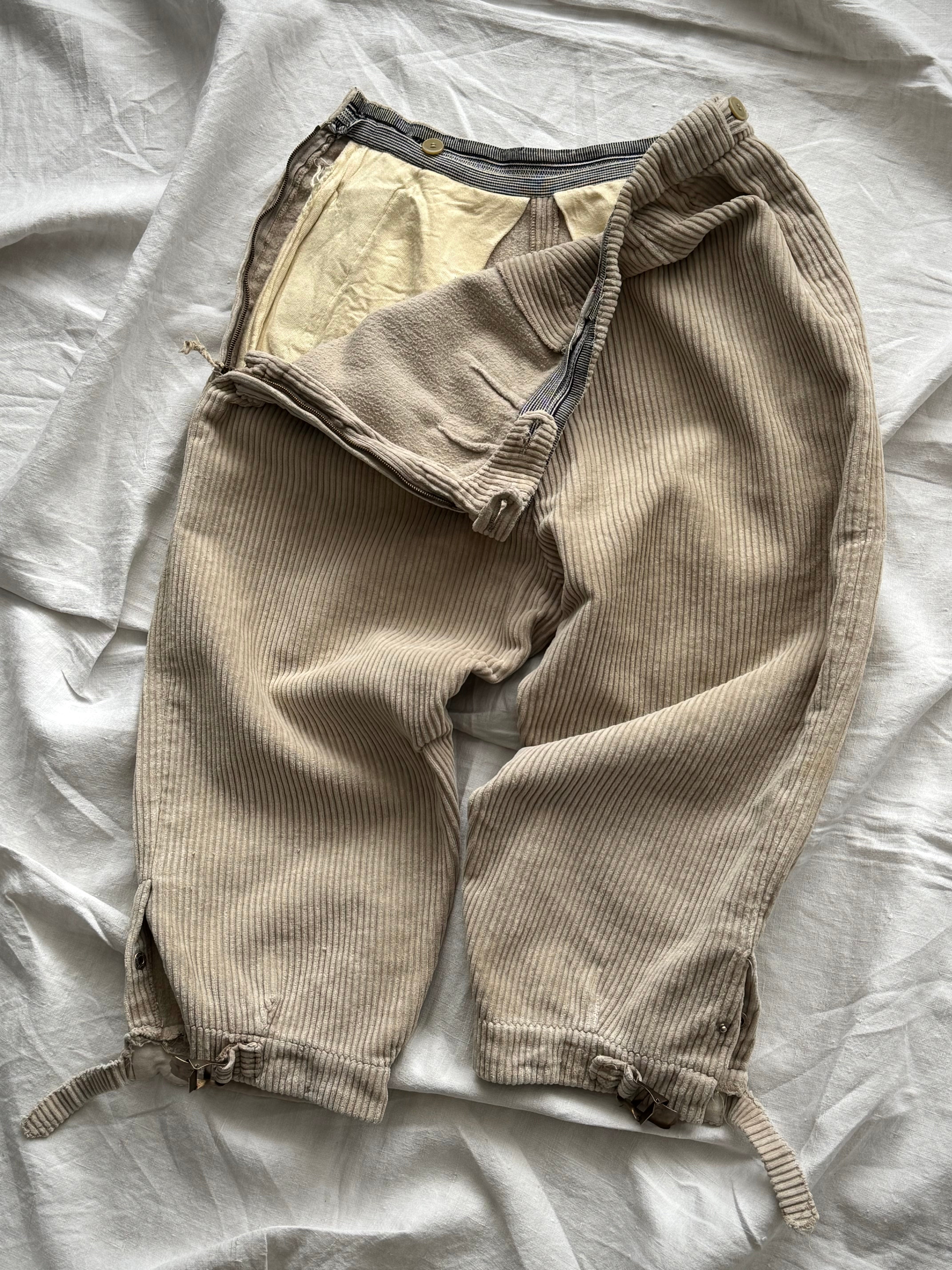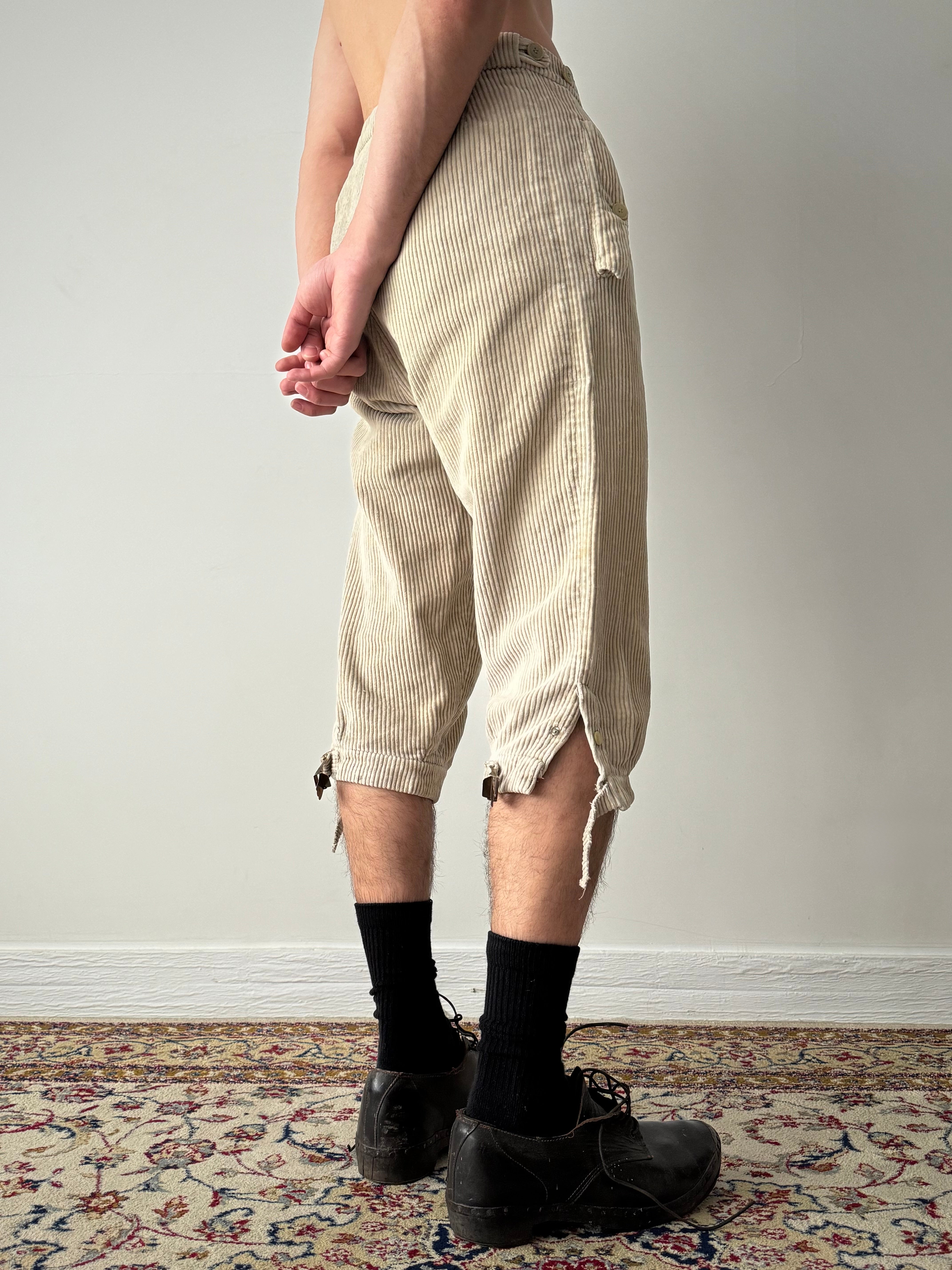1950s German Hunting Side Zip Plus Fours Corduroy Trousers