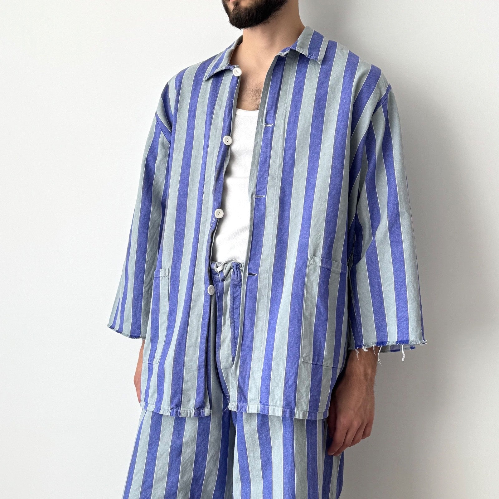 1970s Vintage German Prisoner Work Purple Striped Suit Сhore Jacket / Pants