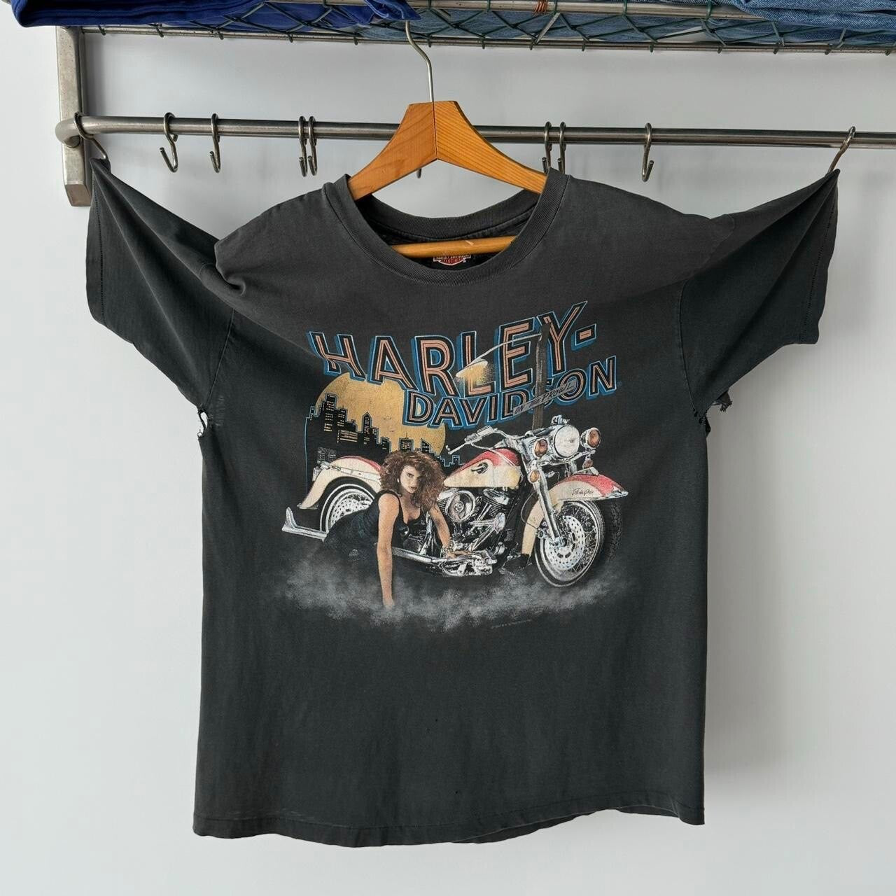 Vintage 1992 Harley Davidson Pittsburgh Faded Distressed T-Shirt