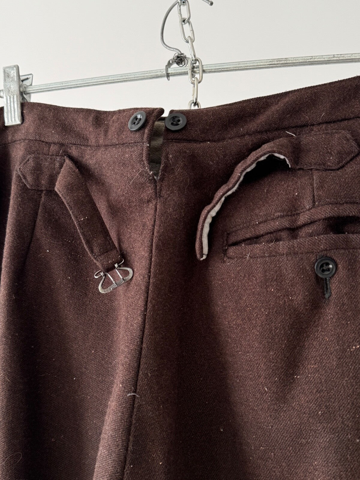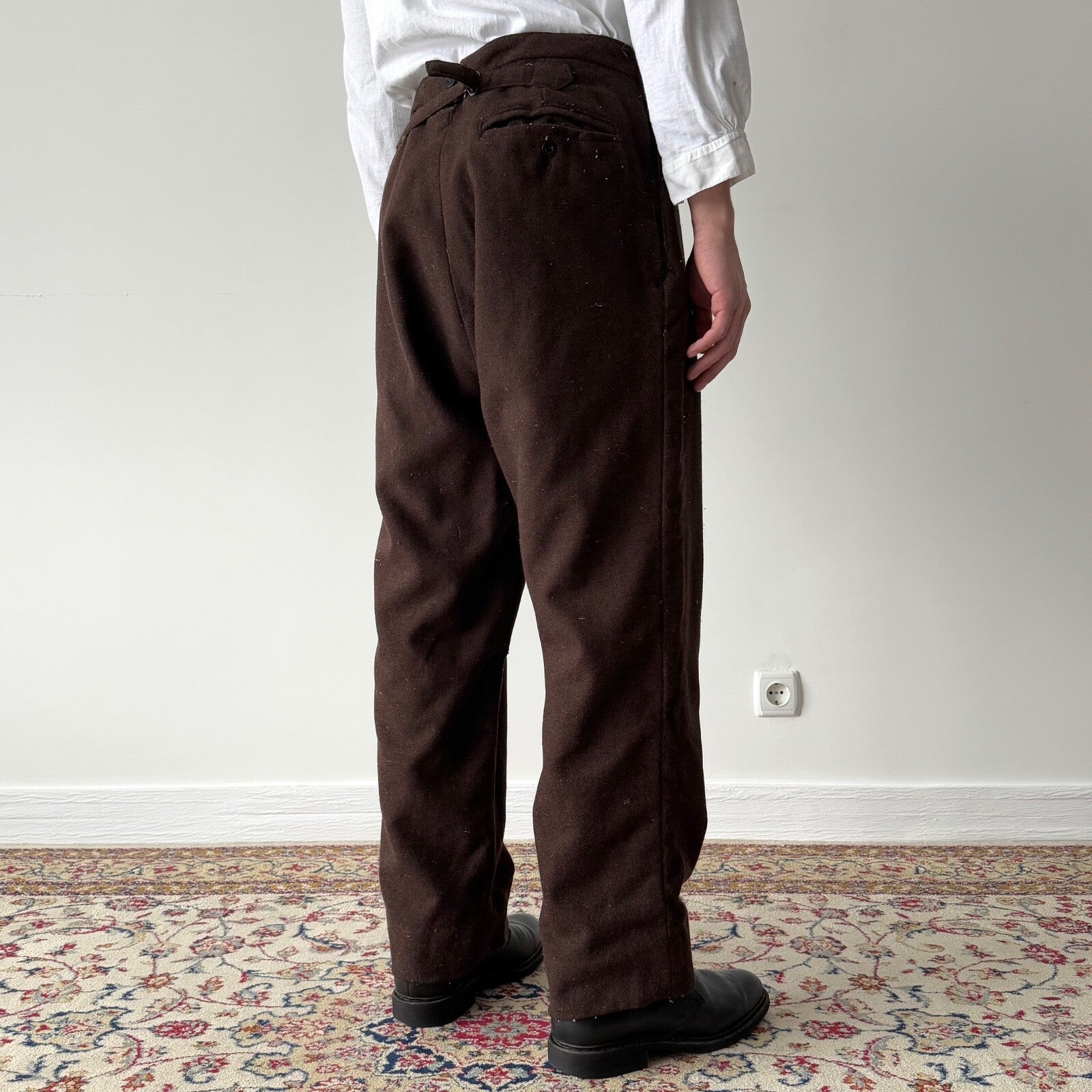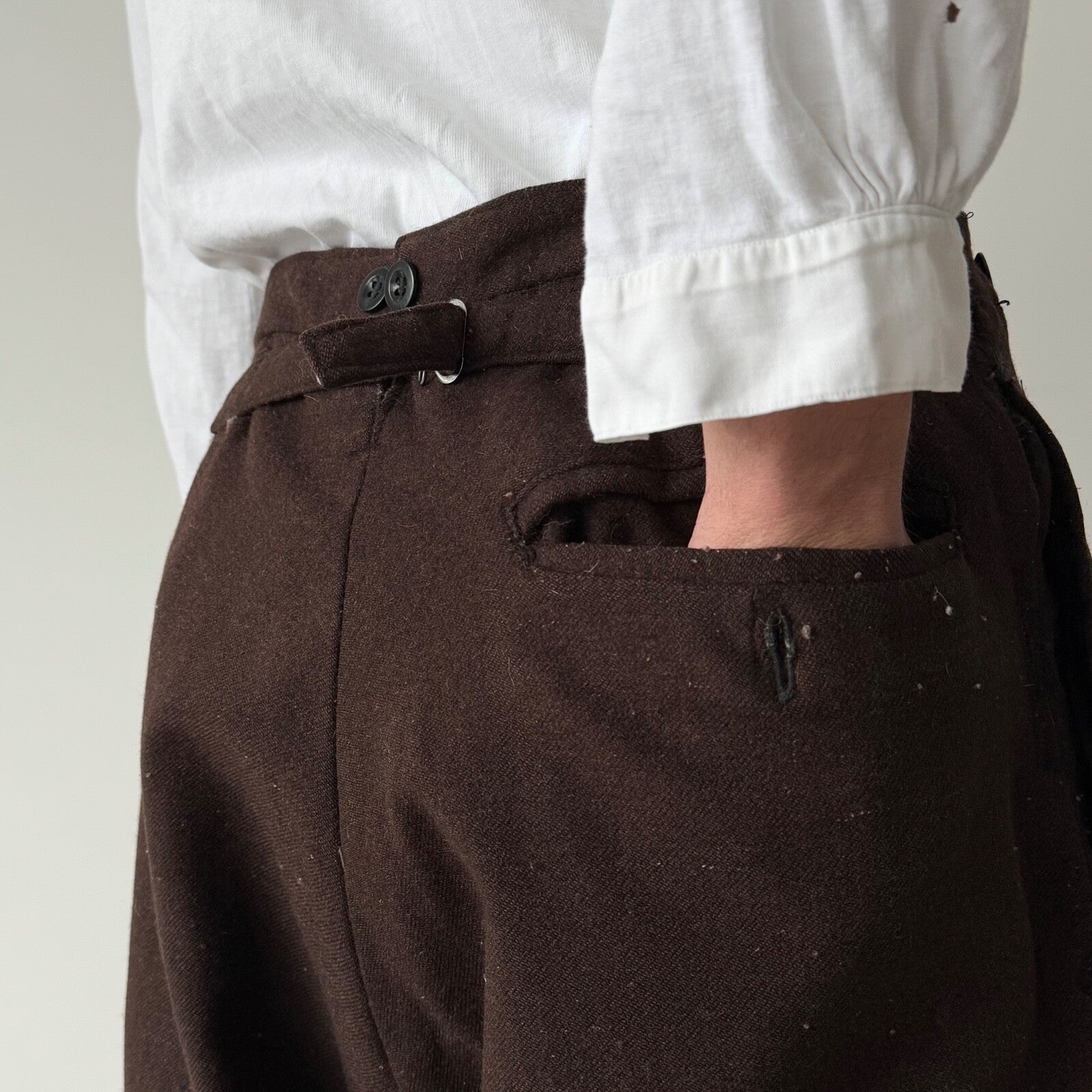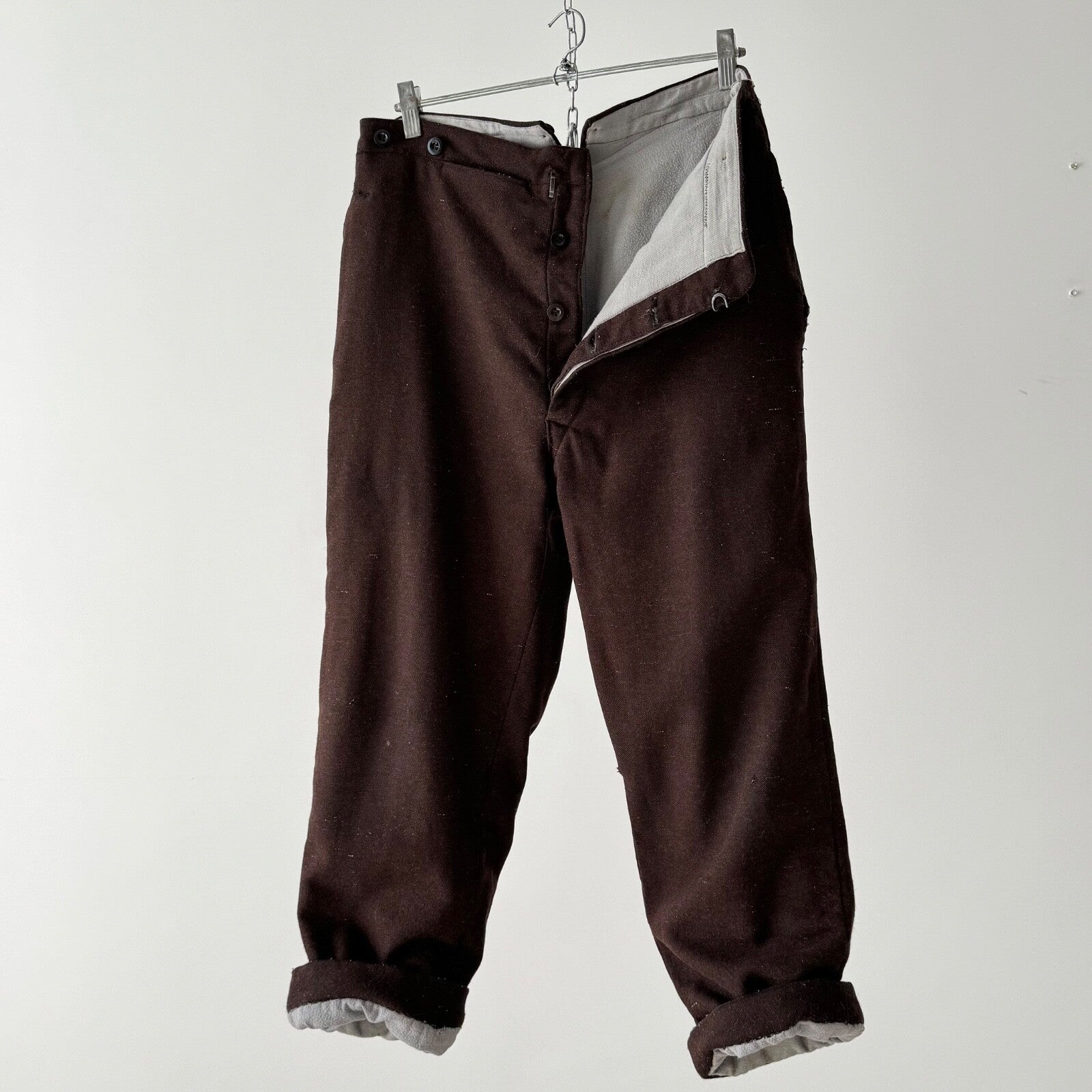 1920s French Workwear ‘Boro’ Buckle Back Faded Winter Pants