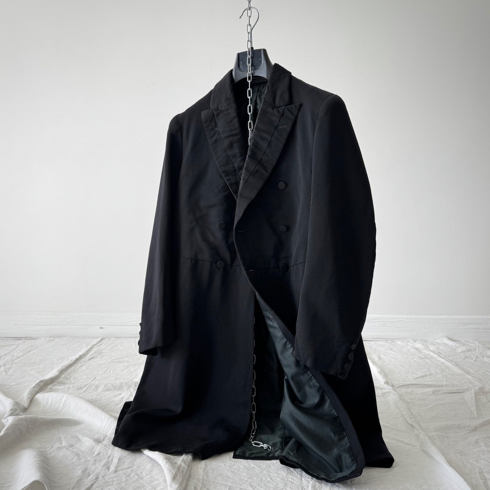 Antique Early 20th Century Edwardian Era European Black Wool Frock Coat