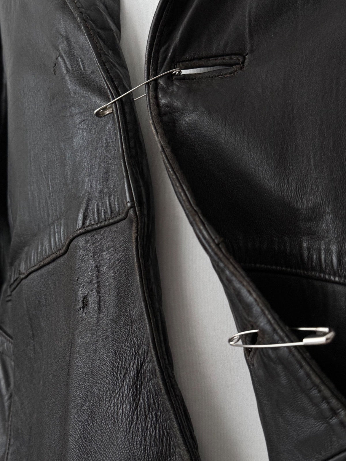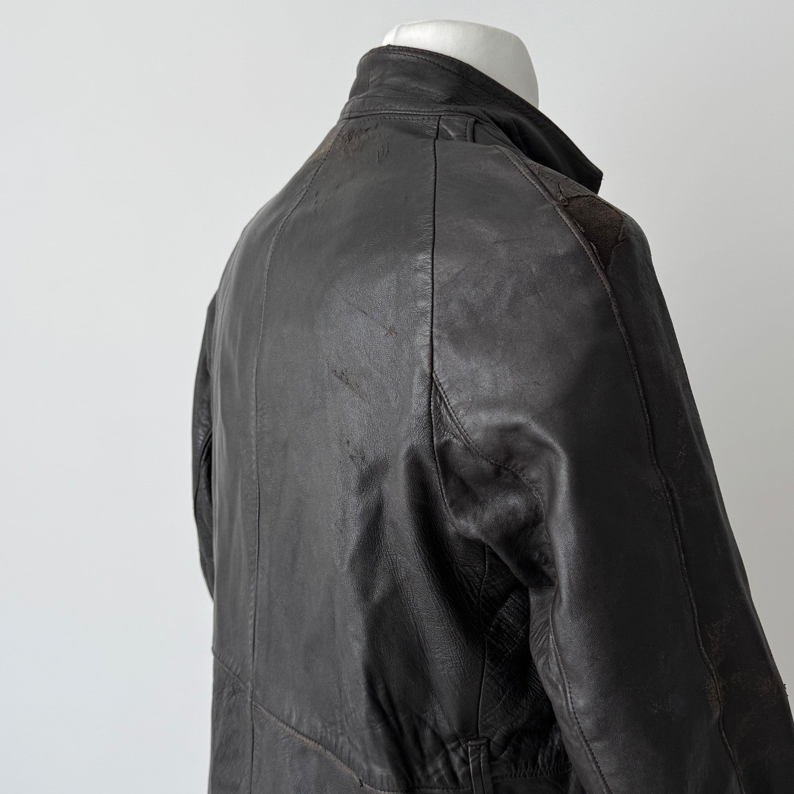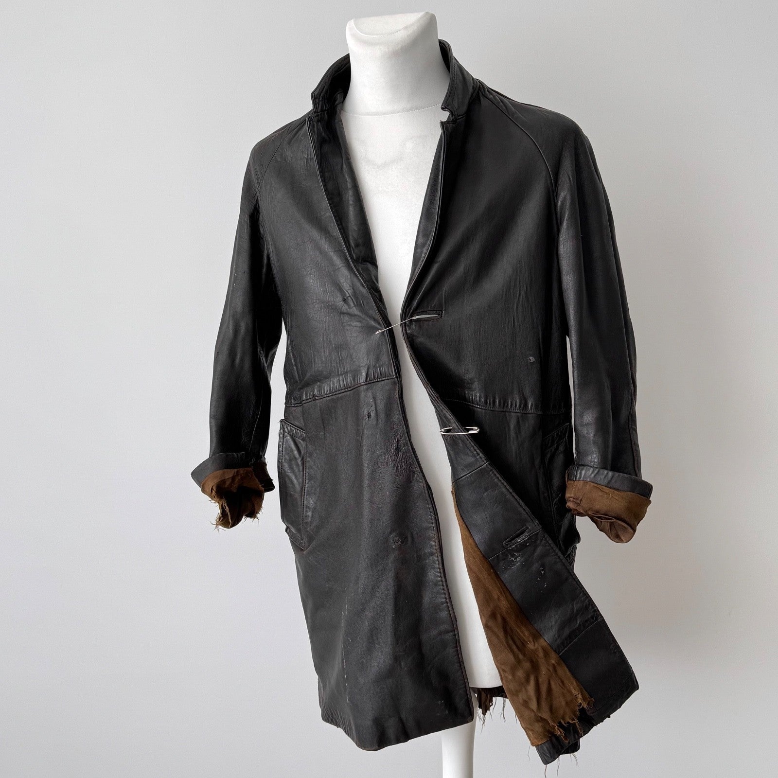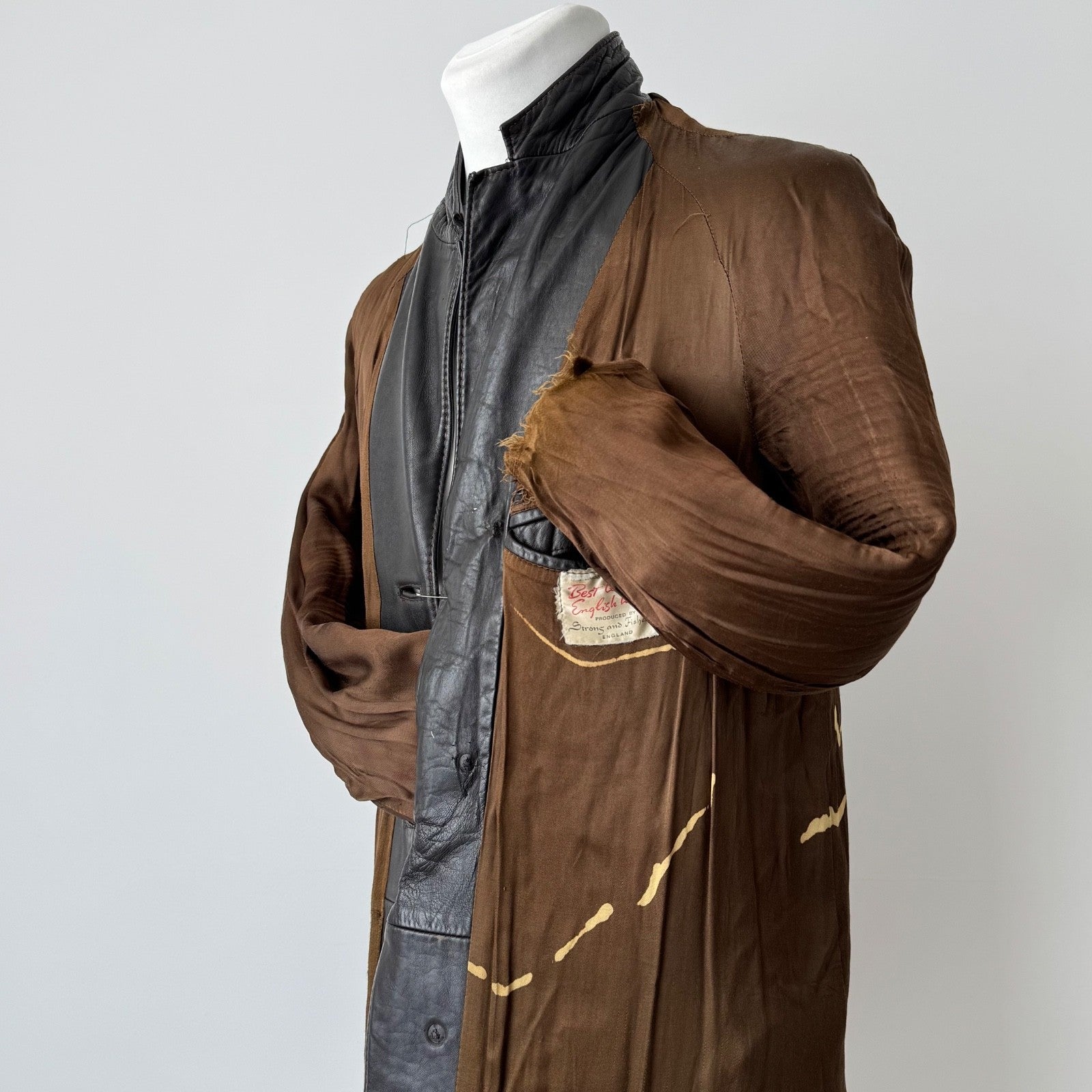 Vintage 1970s England ‘Strong and Fisher’ Thrashed Black Leather Coat